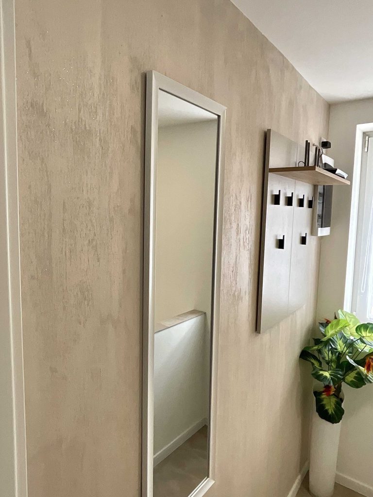 A struktúrált felületeket (egy hordozóra ) mész és márványalapú ásványi vakolattal alakítjuk ki, ami természetes hatást kölcsönöz
